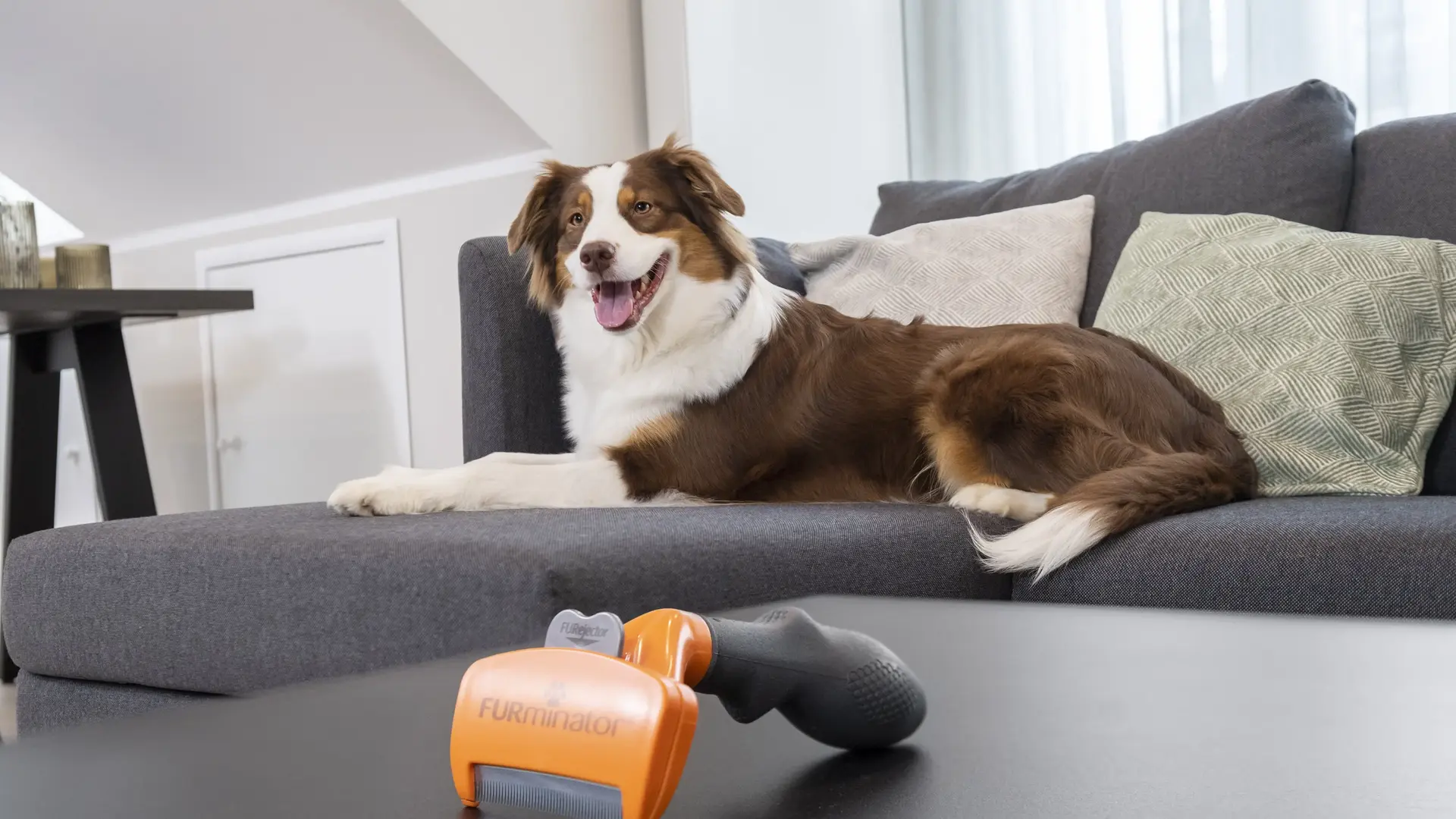 For dogs without an undercoat, regular brushing is essential to remove loose hair, dust and dirt to keep the coat shiny. Dogs with smooth or short coats benefit from a soft bristle brush or a Curry Comb that glides gently over the coat and massages the skin. For example, the FURminator® Dual Grooming Brush, which with its two sides both removes knots and makes the coat shiny. The wire pins detangle the coat, while the boar bristles smooth the top coat.