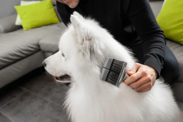 Some dog breeds with evenly growing or curly coat textures, such as Schnauzers or Poodles, should be trimmed or clipped regularly to keep the coat healthy and tangle-free. These tasks are best carried out by a professional groomer as they require specialised techniques. Between grooming appointments, you can groom the coat with suitable brushes and combs to prevent tangles.